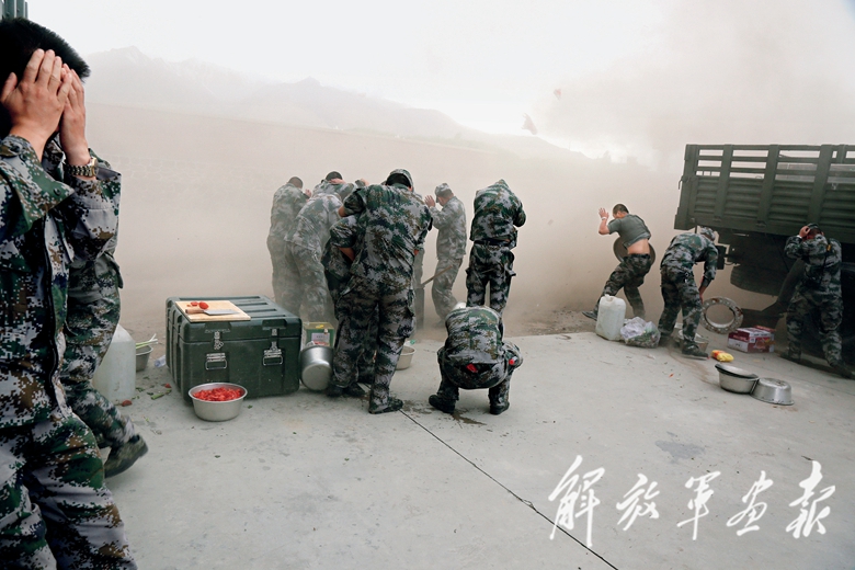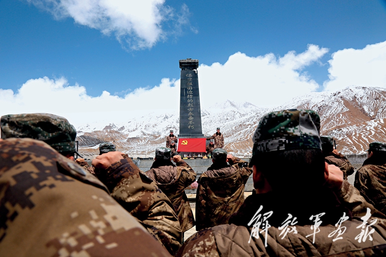 執(zhí)行任務(wù)途中,官兵重溫入黨誓詞。