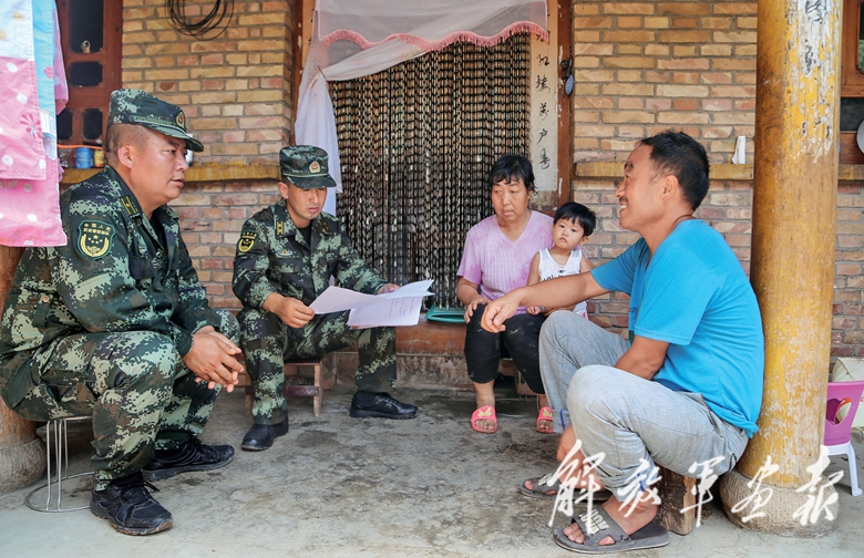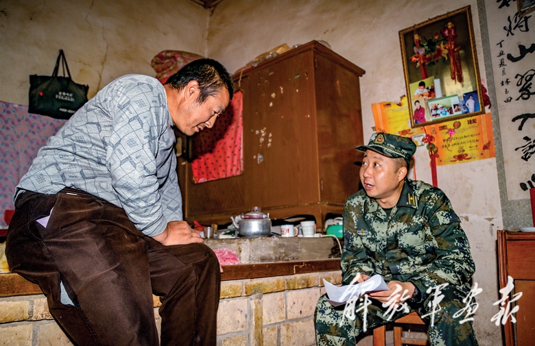 4月中旬,武警甘肅總隊平?jīng)鲋ш犝醯鲁膳c結(jié)對幫扶的“五保戶”王曉義面對面交流,詳細詢問他的生活情況和困難需求。