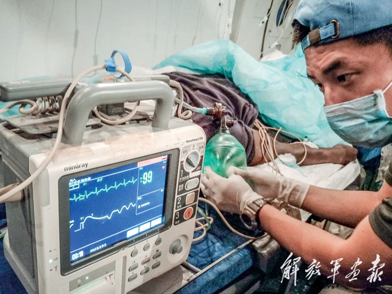 2017年6月30日,第5批赴馬里維和醫(yī)療分隊隊員實時監(jiān)護收治傷員。