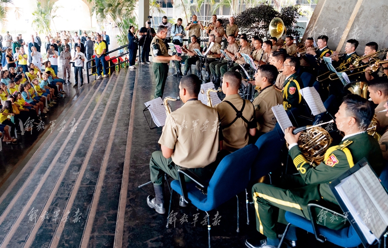 軍事文化周期間,解放軍軍樂團(tuán)組織開展進(jìn)社區(qū)、進(jìn)校園、進(jìn)軍營(yíng)活動(dòng),在巴西利亞小商品市場(chǎng)、里約科帕卡巴納要塞等地組織“軍樂快閃”,把中國(guó)軍樂帶給巴西民眾,反響非常熱烈。軍樂團(tuán)還與巴西總統(tǒng)衛(wèi)隊(duì)軍樂團(tuán)、海軍陸戰(zhàn)隊(duì)軍樂團(tuán)進(jìn)行聯(lián)合演出,用音樂拉近了兩國(guó)之間的距離。