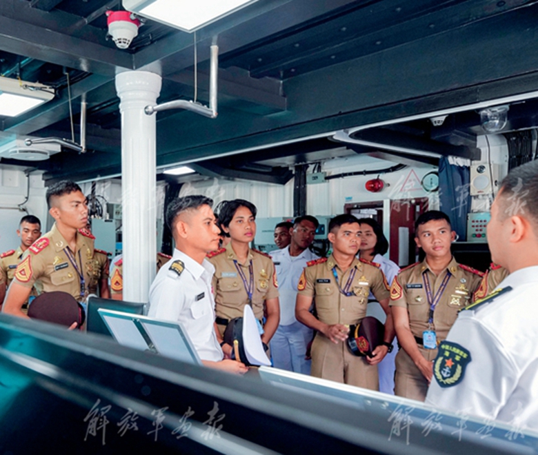 印尼海軍官兵參觀中方艦艇。