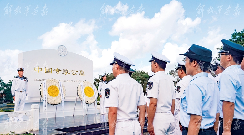 當地時間2024年7月19日,和平方舟醫(yī)院船訪問坦桑尼亞期間,官兵代表前往達累斯薩拉姆西郊的援坦中國專家公墓憑吊。 (攝影/記者 曹春耀)