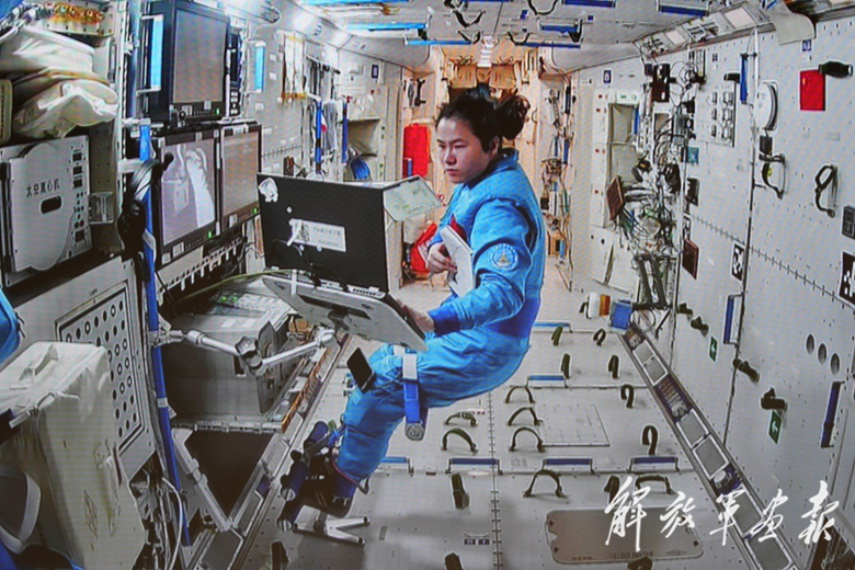 1月20日在北京航天飛行控制中心拍攝的神舟十九號航天員王浩澤在空間站組合體艙內(nèi)協(xié)同工作的畫面。(攝影/新華社記者 劉 芳)