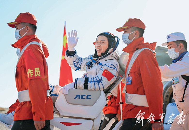 現(xiàn)場醫(yī)監(jiān)醫(yī)保人員確認(rèn)航天員湯洪波、唐勝杰、江新林身體狀態(tài)良好。