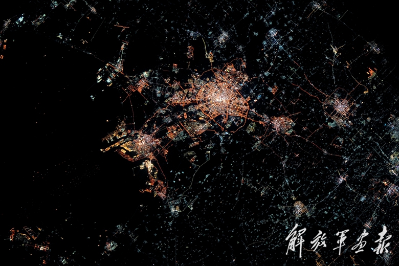 這是神舟十七號(hào)航天員湯洪波在中國空間站拍攝的天津夜景。