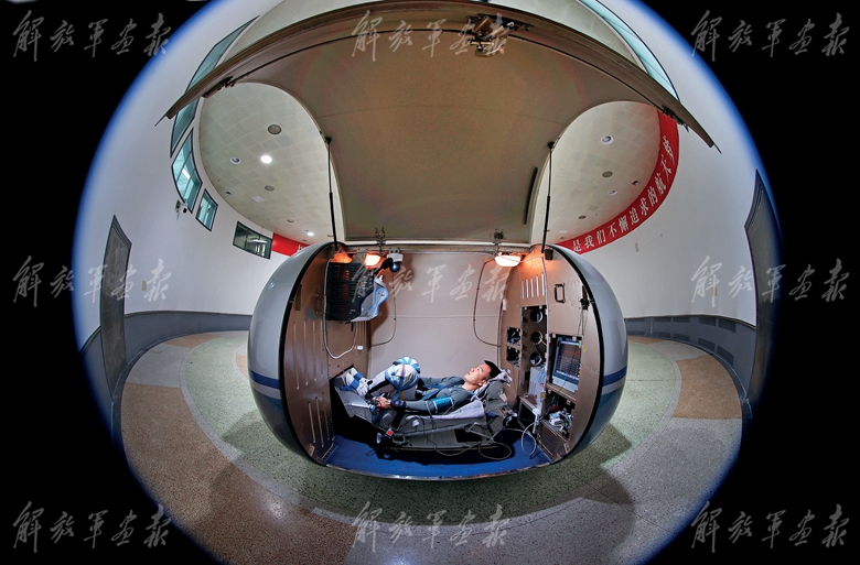 神舟十九號(hào)航天員宋令東進(jìn)行離心機(jī)訓(xùn)練。(攝影/徐 部)