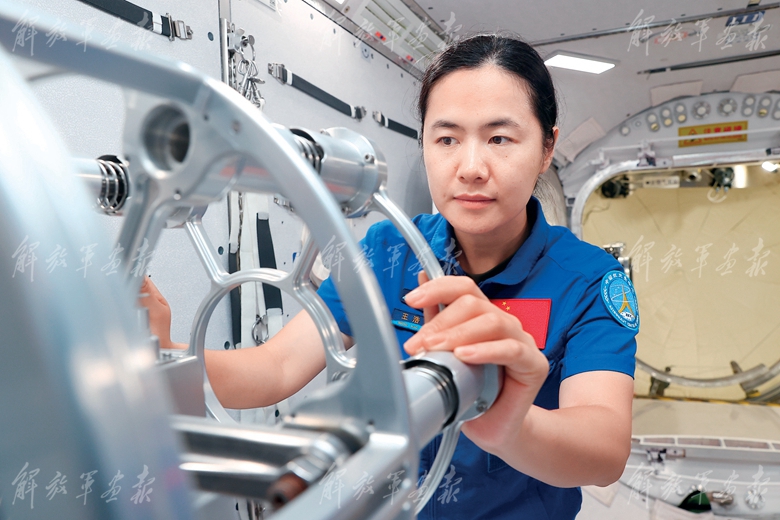 神舟十九號(hào)航天員蔡旭哲(右)進(jìn)行人船合練。(攝影/徐 部)