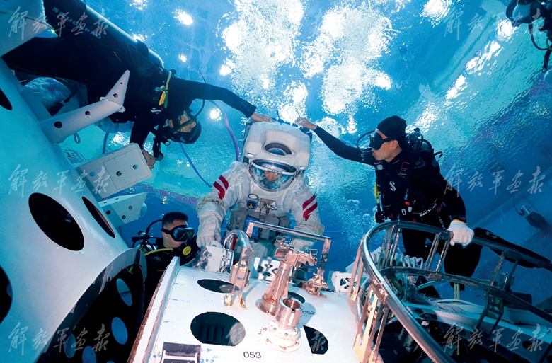 神舟十九號(hào)航天員蔡旭哲進(jìn)行水下訓(xùn)練。(攝影/孔方舟)