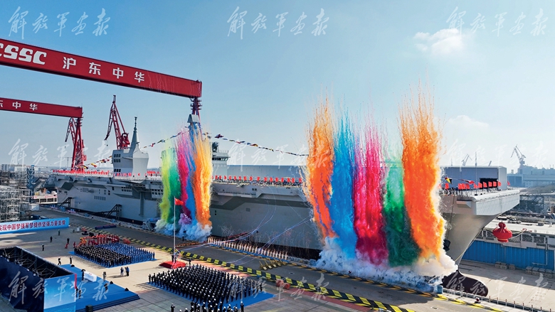 海軍076兩棲攻擊艦首艦下水命名儀式現(xiàn)場(chǎng)。