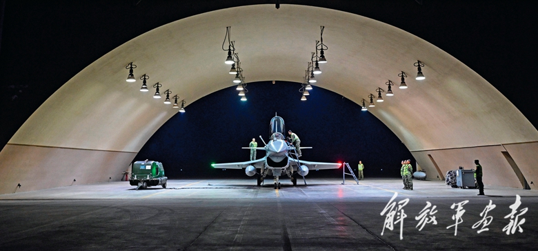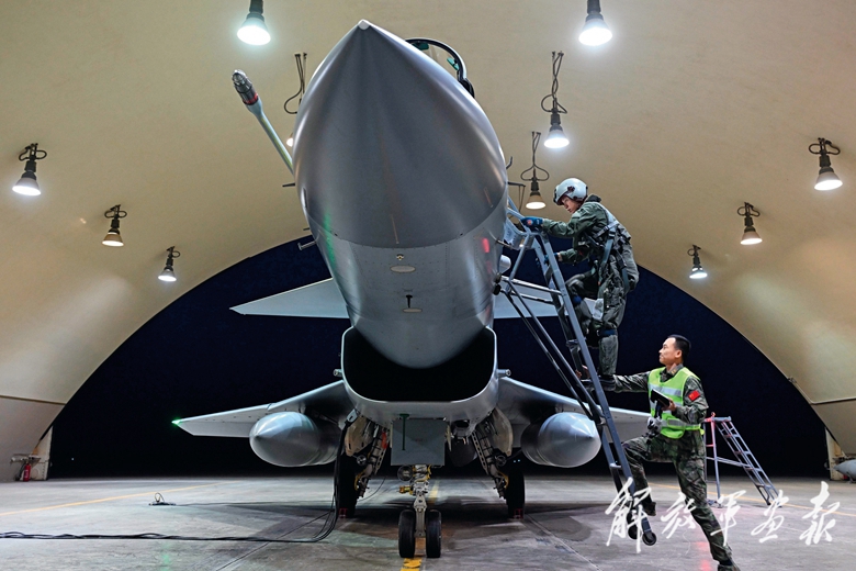 當?shù)貢r間4月28日,埃及空軍某基地,參加中埃“文明之鷹-2025”空軍聯(lián)合訓練的中國空軍殲-10C戰(zhàn)機進行夜航前的準備。