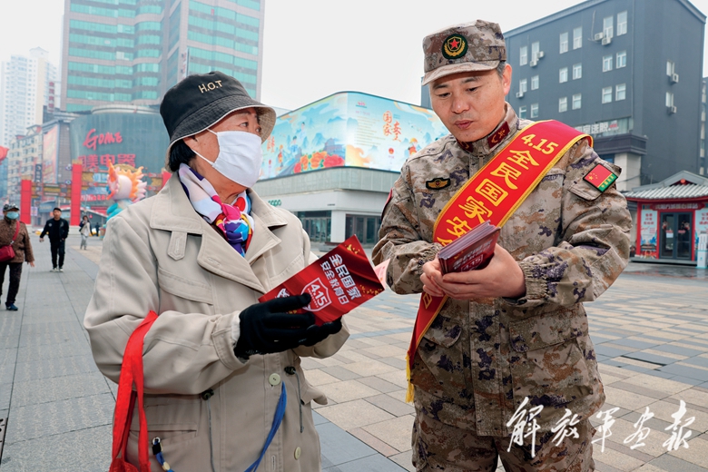 沈陽警備區(qū)工作人員走上街頭,為市民宣講國家安全知識。