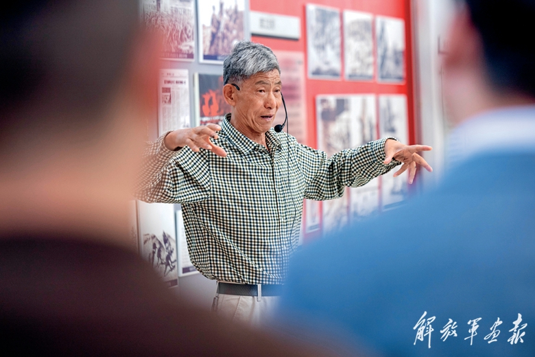 作為三江營革命烈士紀(jì)念館義務(wù)講解員,張明海為前來祭奠的群眾講述烈士故事。(攝影/嚴(yán)明亮)