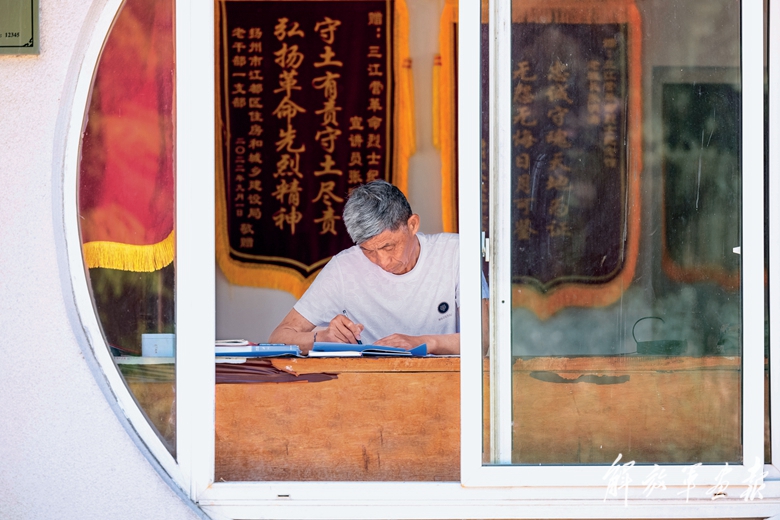 晨光中,江蘇揚(yáng)州三江營革命烈士紀(jì)念館專職管理員、66歲的退役老兵張明海,仔細(xì)擦拭矗立在紀(jì)念館前的烈士紀(jì)念碑。他告訴記者,每天擦拭一遍紀(jì)念碑,是他對烈士的敬意。