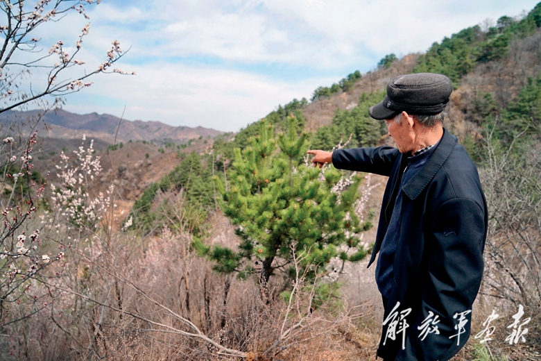 3月31日,河北省平山縣南段峪村村民、雷燁希望小學退休教師王海軍指認雷燁烈士犧牲處。