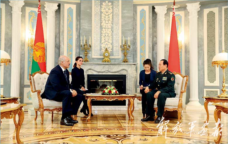 訪問(wèn)期間,魏鳳和拜會(huì)了白俄羅斯總統(tǒng)盧卡申科,與俄、白兩國(guó)國(guó)防部長(zhǎng)舉行會(huì)談,就進(jìn)一步發(fā)展雙邊關(guān)系、深化軍事安全領(lǐng)域務(wù)實(shí)合作及有關(guān)國(guó)際和地區(qū)問(wèn)題交換意見(jiàn),達(dá)成重要共識(shí)。