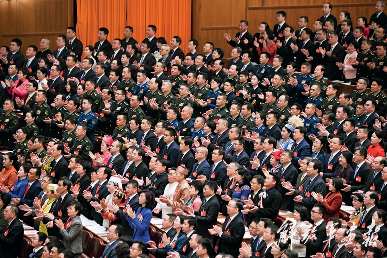 3月5日,十四屆全國(guó)人大二次會(huì)議在北京人民大會(huì)堂開幕。(攝影/新華社記者 丁海濤)
