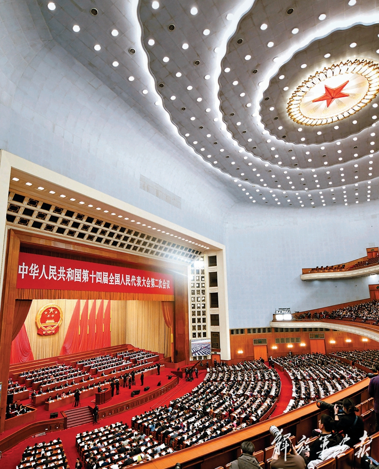 十四屆全國(guó)人大二次會(huì)議開幕會(huì)現(xiàn)場(chǎng)氣氛莊重?zé)崃?。(攝影/記者 王 俊)