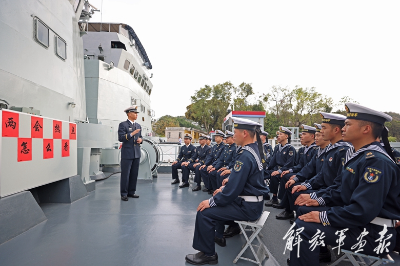 海軍某登陸艦大隊開展“兩會熱點怎么看”討論活動。(攝影/王文斌)
