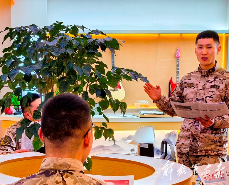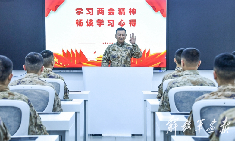 陸軍第73集團軍某旅官兵開展學習兩會精神活動,分享交流學習心得。(攝影/特約通訊員 劉志勇)