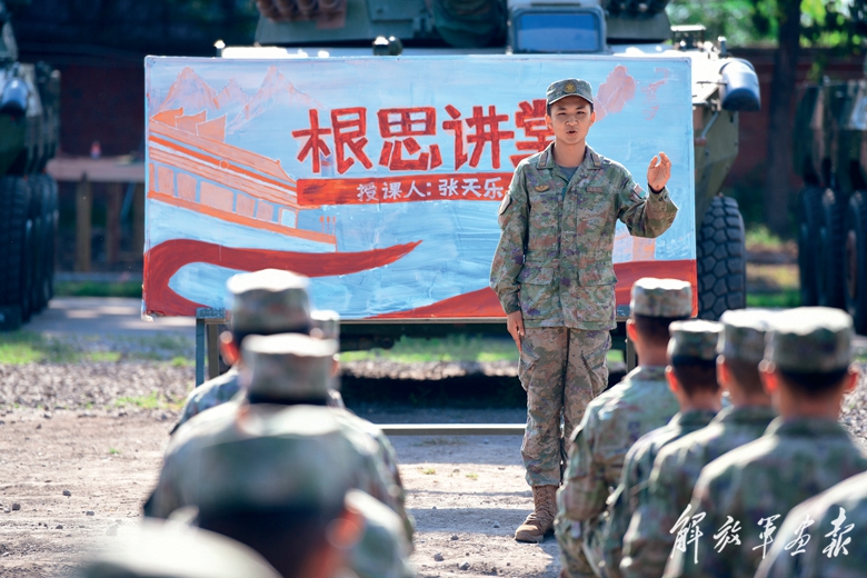 戰(zhàn)士在“根思講堂”上分享強軍故事。(攝影/季 鵬)