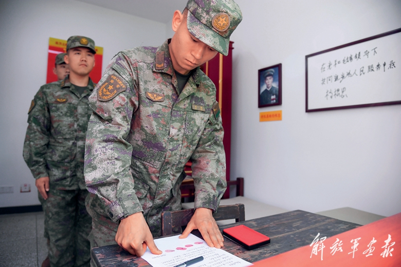 執(zhí)行任務(wù)前,官兵鄭重簽下請戰(zhàn)書。