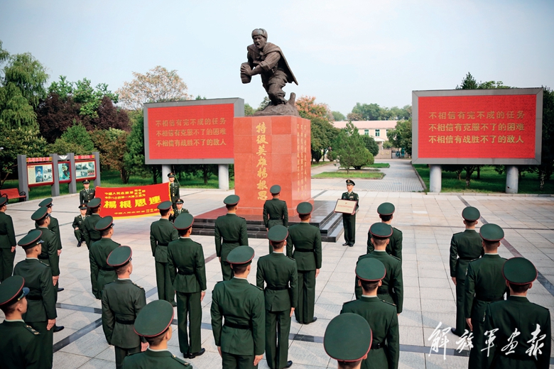 2023年,“楊根思連”被中央軍委表彰為“全軍踐行強軍目標(biāo)標(biāo)兵單位”,連隊官兵向老連長匯報榮譽。
