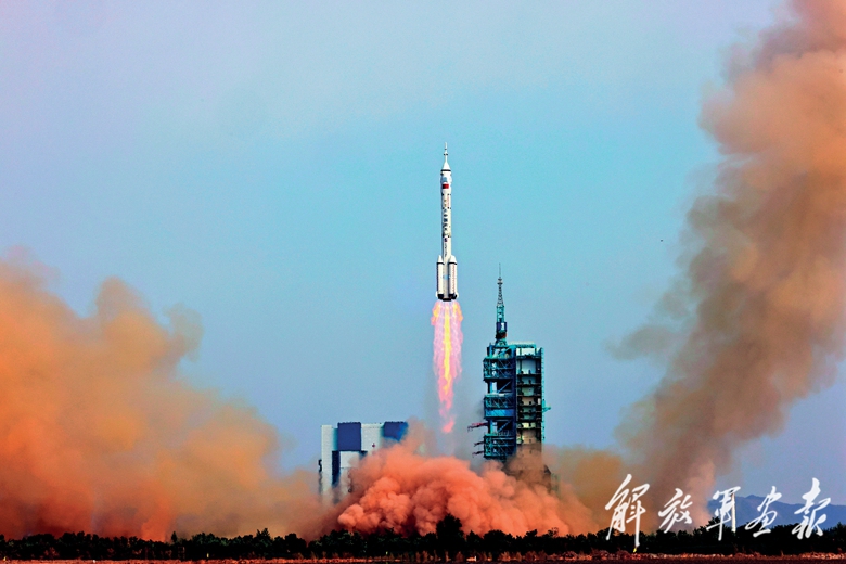 2023年10月26日,長征二號F遙十七運載火箭托舉著神舟十七號載人飛船和3名航天員拔地而起,直入蒼穹。(攝影/記者 王 ?。?/span>