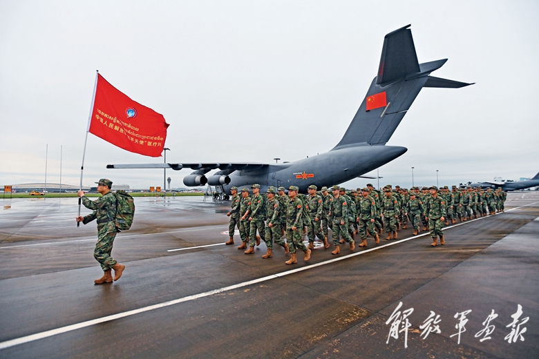 2023年9月,參加中柬“和平天使-2023”衛(wèi)勤聯(lián)合演習的我軍醫(yī)療隊員出征。(攝影/王文軍)
