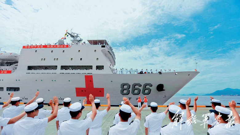2023年7月3日至9月19日,中國海軍和平方舟醫(yī)院船赴基里巴斯、湯加、瓦努阿圖、所羅門群島、東帝汶執(zhí)行“和諧使命-2023”任務(wù)。圖為和平方舟醫(yī)院船從浙江舟山某軍港解纜起航。(攝影/韓 林)