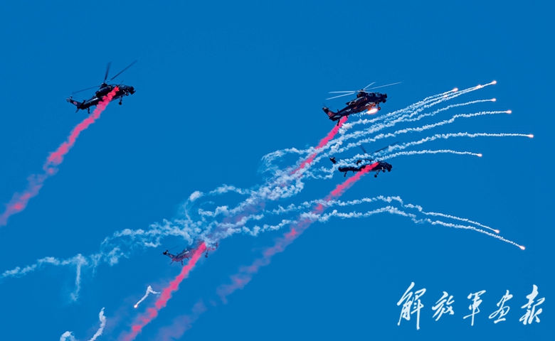 2023年9月14日至17日,第六屆中國天津國際直升機博覽會在天津空港經(jīng)濟區(qū)舉行。圖為直-10戰(zhàn)機進行飛行表演。(攝影/記者 欒 鋮)