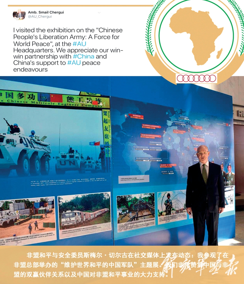 由中央軍委政治工作部、中國(guó)常駐聯(lián)合國(guó)代表團(tuán)、中國(guó)駐非盟使團(tuán)共同舉辦的“維護(hù)世界和平的中國(guó)軍隊(duì)”主題展覽,分別在紐約聯(lián)合國(guó)總部和非盟總部開展。