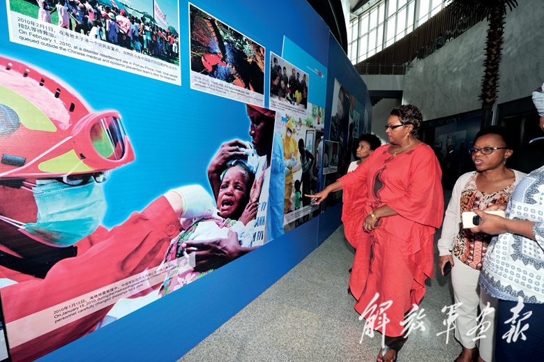 當(dāng)?shù)貢r(shí)間3月18日至3月22日,展覽在埃塞俄比亞首都亞的斯亞貝巴的非盟總部舉辦。中國(guó)駐非盟使團(tuán)臨時(shí)代辦陳緒峰、非盟委員會(huì)代表坎布齊、駐亞的斯亞貝巴武官團(tuán)團(tuán)長(zhǎng)蘇利、解放軍國(guó)際傳播代表團(tuán)團(tuán)長(zhǎng)毛乃國(guó)在開幕式上致辭。解放軍國(guó)際傳播代表團(tuán)成員潘慶華主持開幕式。非盟總部官員、非盟成員國(guó)使節(jié)及軍事代表、非洲常備軍及非洲危機(jī)應(yīng)對(duì)快速反應(yīng)部隊(duì)代表,聯(lián)合國(guó)、北約等國(guó)際組織官員,以及美國(guó)、英國(guó)、法國(guó)、日本、挪威、瑞典、巴基斯坦、古巴、阿根廷、墨西哥等非盟域外伙伴方代表共200余人出席開幕式。