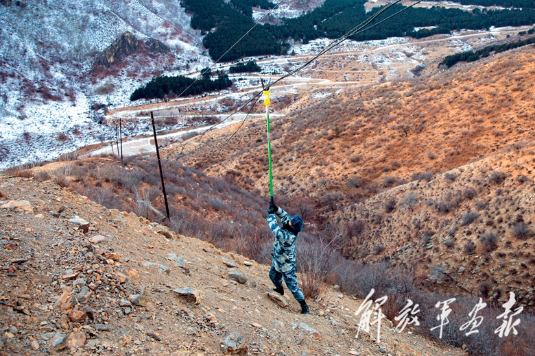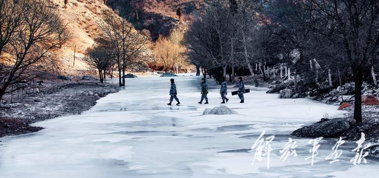 山中氣溫已降至零下25攝氏度,呼嘯的山風(fēng)卷著碎石時時襲來,巡線官兵左突右閃,向山上頑強(qiáng)挺進(jìn)。上山不久,一條凍河擋住前路。在其他季節(jié),這條河水流湍急,官兵只能繞路;冬季結(jié)冰,官兵就可以直接穿越冰面前進(jìn),能節(jié)省近1個小時的時間。