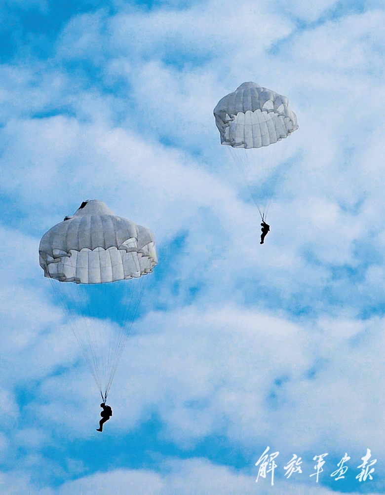 偵察分隊(duì)進(jìn)行低空傘降訓(xùn)練。