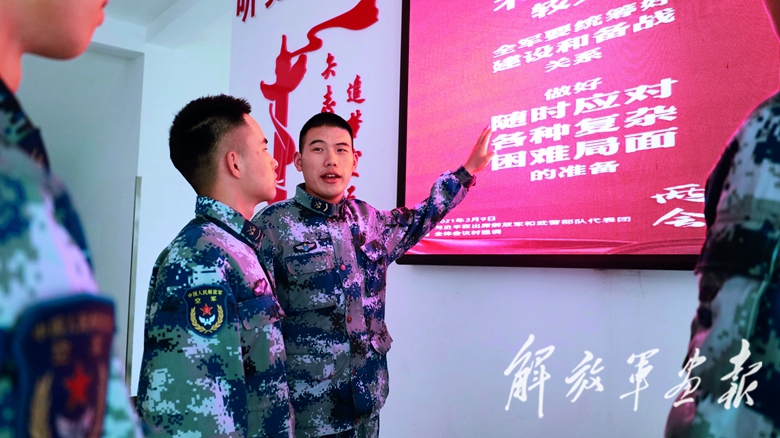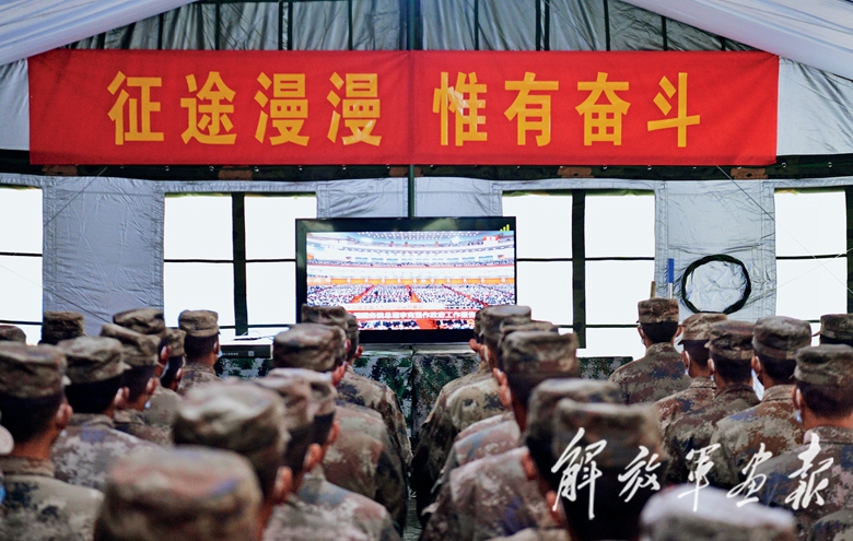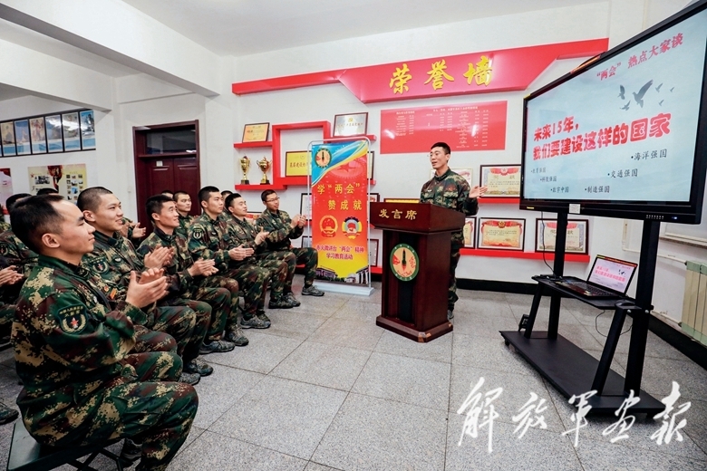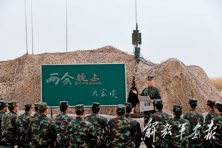 軍營連盛會,官兵心向黨。神州大地座座軍營春潮涌動,全軍和武警部隊官兵以各種形式關(guān)注兩會動態(tài),學(xué)習(xí)兩會精神,不斷奏響催人奮進的樂章。