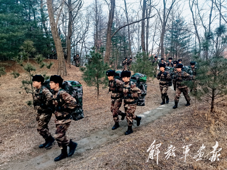 文職人員進(jìn)行武裝徒步行軍訓(xùn)練。