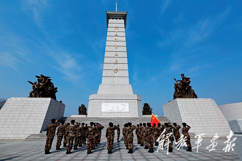 組織參訓(xùn)文職人員在抗美援朝紀(jì)念塔前向軍旗宣誓。
