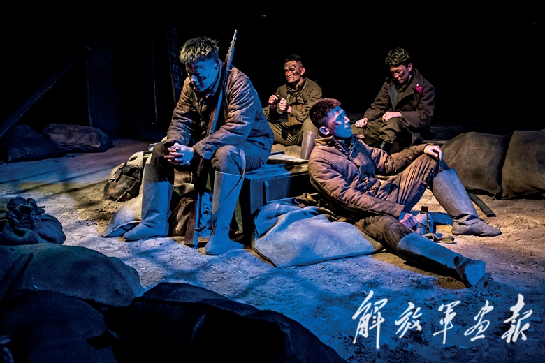 暗藍(lán)的燈光,彌漫的煙氣,輕聲吟唱的俄文歌《華沙曲》,延伸到觀眾席的沙包,躺伏在工事上的戰(zhàn)士……日前,由國防大學(xué)軍事文化學(xué)院軍事文藝創(chuàng)演系研究生排演的話劇《前線》,以沉浸式的劇場設(shè)計(jì)、逼真的布景、投入的表演和準(zhǔn)確的調(diào)度,讓觀眾從走進(jìn)劇場開始,便仿佛穿越時空置身于1941年底蘇聯(lián)衛(wèi)國戰(zhàn)爭的前線。