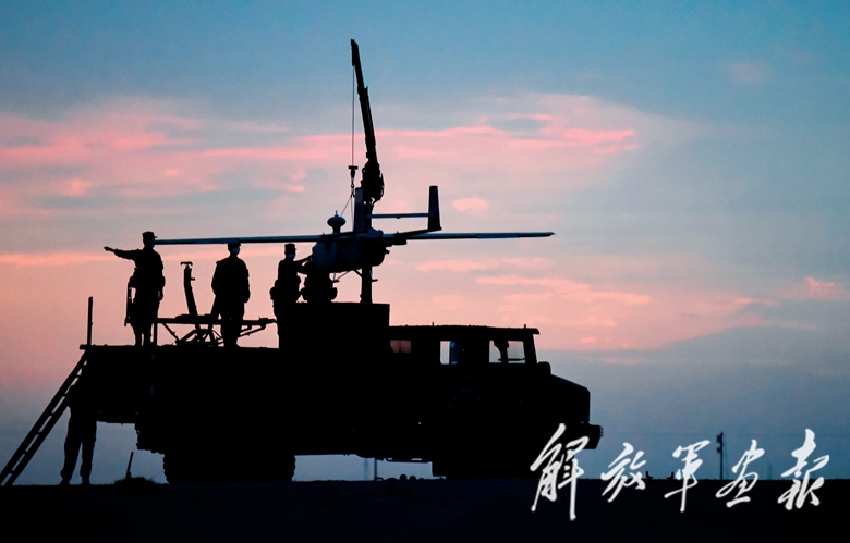“‘飛鷹’注意,對P地區(qū)實施偵察!”4時許,接到情況通報后,無人機悄然抵近目標(biāo)空域。情報偵察隊迅速前出搜捕目標(biāo),作戰(zhàn)數(shù)據(jù)不斷流轉(zhuǎn)。一條命令傳到指揮車上:“1號高地后側(cè)發(fā)現(xiàn)‘?dāng)场诒?,對其進(jìn)行火力打擊!”指揮員輕敲鍵盤,計算機即時生成作戰(zhàn)文書并發(fā)送給火力單元。