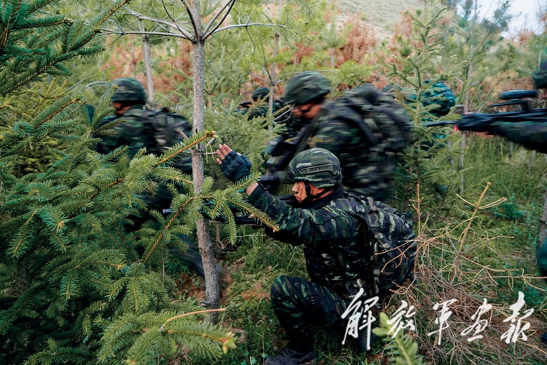 “沿這條小路,一直向北行進(jìn),過程中要利用地形地物隱蔽?!痹诎醋鴺?biāo)點(diǎn)依圖行進(jìn)課目中,經(jīng)驗(yàn)豐富的副小隊(duì)長劉開赟帶領(lǐng)先頭分隊(duì)快速隱蔽接“敵”。在這片陌生地域,他們不僅要在地圖上快速判明最佳路線,還要在1小時(shí)內(nèi)奔襲10公里至目標(biāo)地域?qū)嵤﹤刹?,為指揮員制訂作戰(zhàn)方案提供可靠依據(jù)。