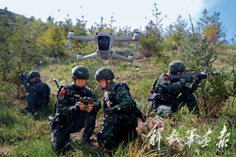頭頂烈日,官兵一路爬陡坡、穿密林、涉水溝,克服重重困難,抵達(dá)目標(biāo)地域。隨即各作戰(zhàn)小組展開戰(zhàn)斗隊(duì)形。偵察組利用無人機(jī)、遠(yuǎn)程望遠(yuǎn)鏡等設(shè)備展開偵察行動;狙擊組快速占領(lǐng)制高點(diǎn),尋找最佳狙擊點(diǎn)位,隨時(shí)準(zhǔn)備投入捕殲戰(zhàn)斗……