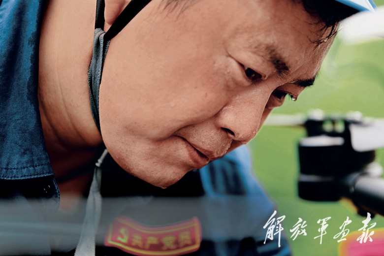 抗洪搶險(xiǎn)演練中,劉東興熟練操作自己研發(fā)的無(wú)人機(jī)。