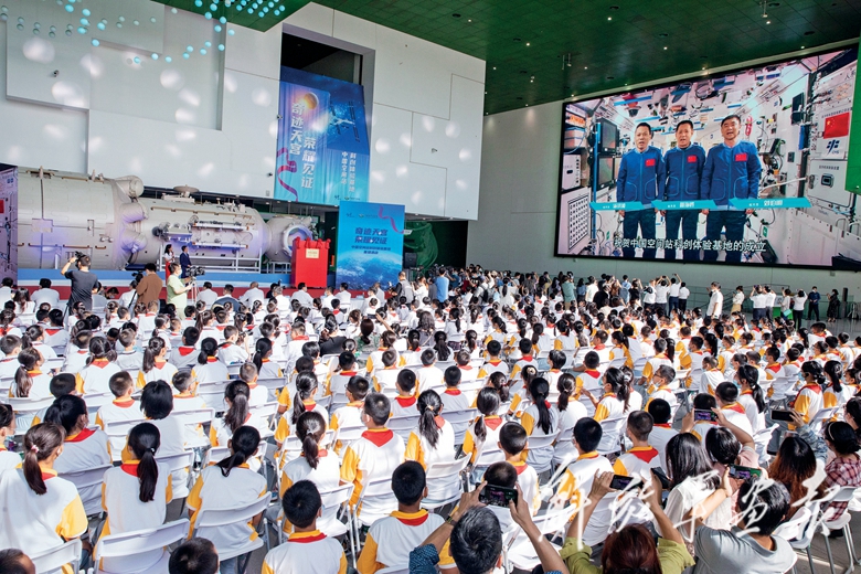 9月3日下午,“時(shí)代精神耀香江”之仰望星空話天宮活動(dòng)在北京、香港兩地聯(lián)動(dòng)展開(kāi)?;顒?dòng)中,近300名香港科技工作者、教師和學(xué)生與正在天宮空間站執(zhí)行任務(wù)的神舟十二號(hào)航天員聶海勝、劉伯明和湯洪波進(jìn)行了一場(chǎng)別開(kāi)生面的天地連線。