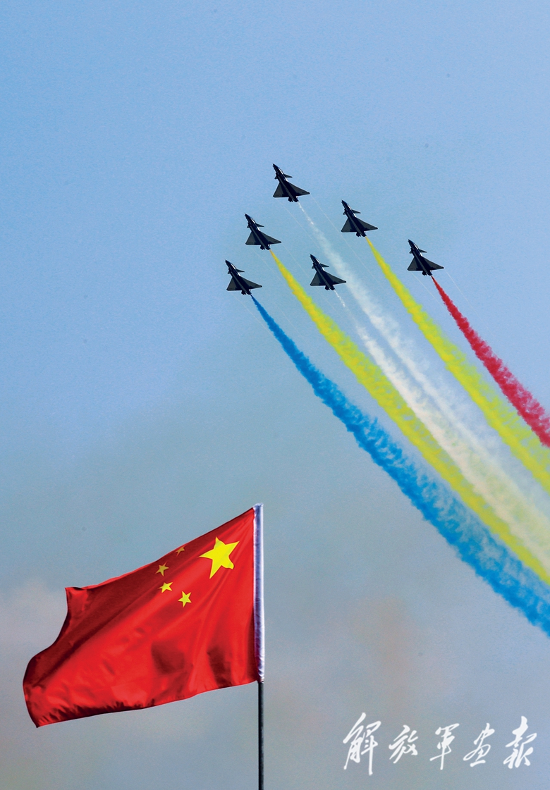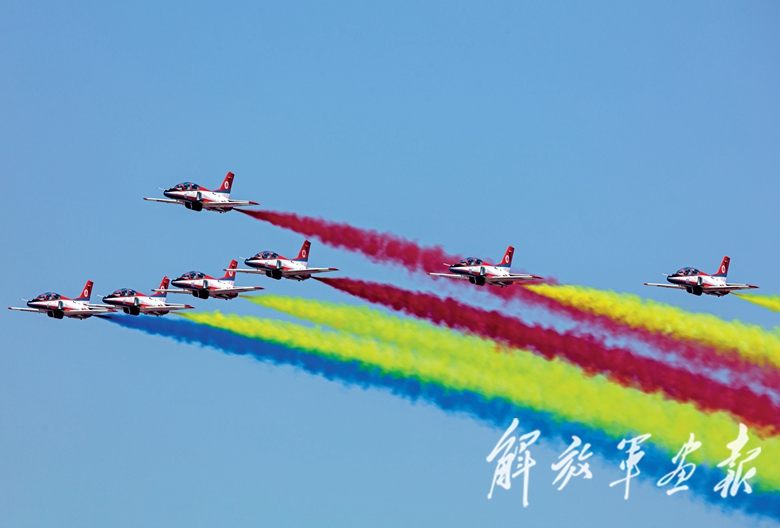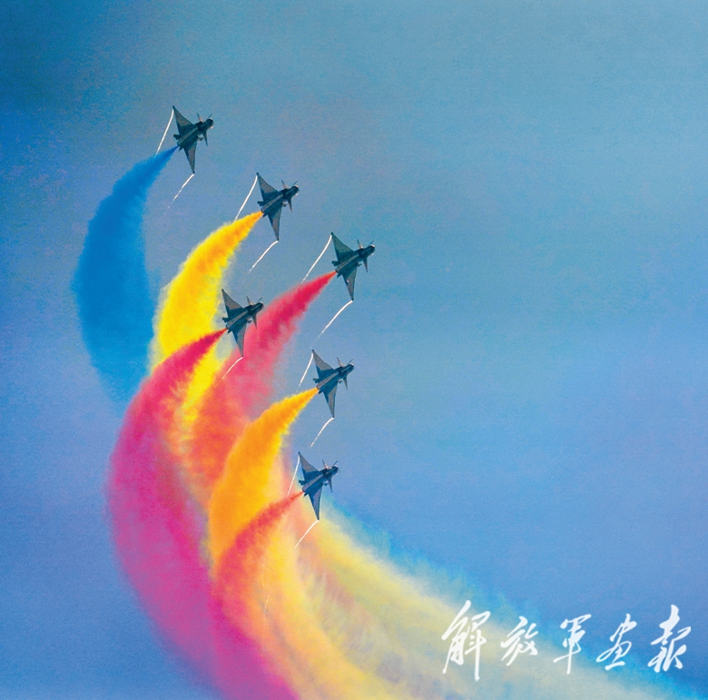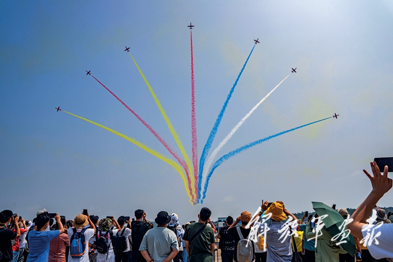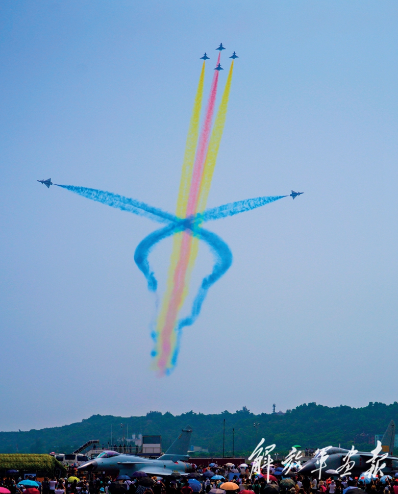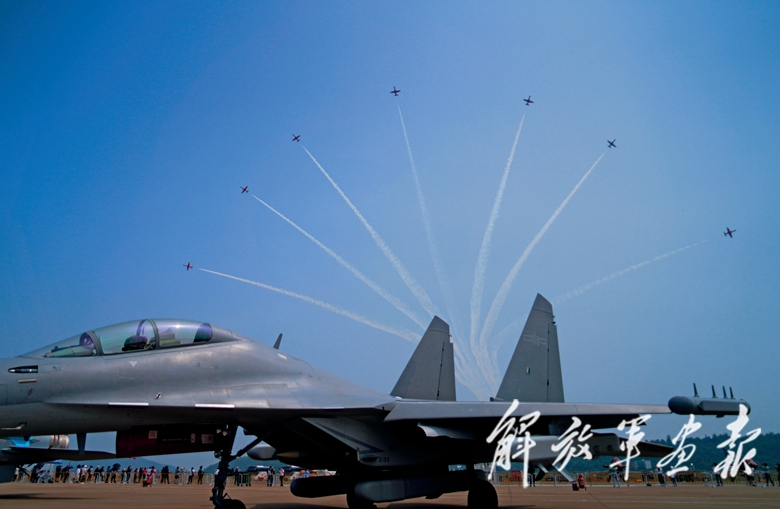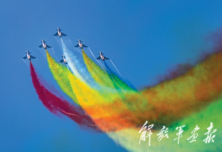 9月28日上午9時(shí)30分,航展正式開幕??哲姟鞍艘弧憋w行表演隊(duì)的6架殲-10表演機(jī)依次升空。五機(jī)水平開花、六機(jī)分組開花等22組特技飛行表演動(dòng)作精彩絕倫,奏響了本屆航展飛行表演的序曲。