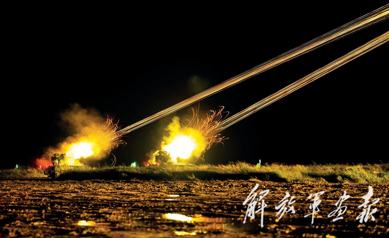 夜幕降臨,“敵機(jī)”再次來襲,防空分隊發(fā)揮某型火炮和雷達(dá)優(yōu)勢,鎖定目標(biāo)后,多型高炮和導(dǎo)彈梯次開火,全殲來犯“敵機(jī)”……