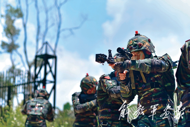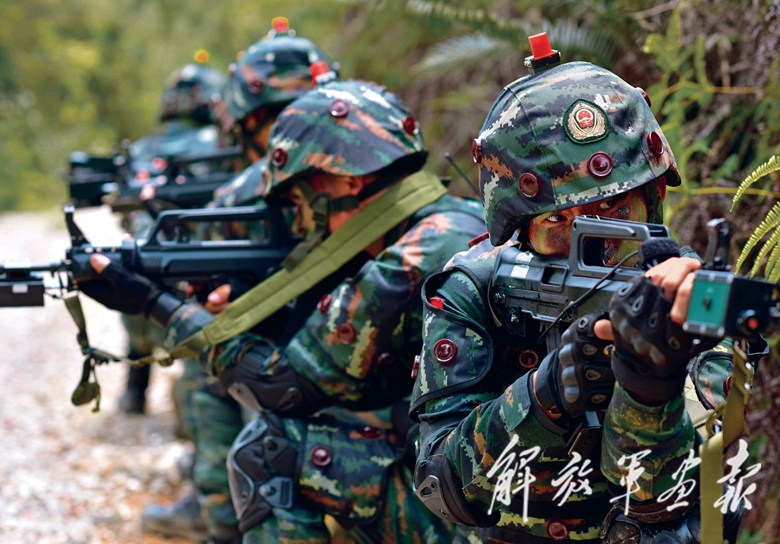 排長劉敬凱身上的迷彩服已被汗水浸透,他顧不上擦拭額頭的汗珠,帶領(lǐng)隊(duì)伍在山林中小心翼翼地搜索前進(jìn)。官兵屏聲斂氣,戰(zhàn)靴輕輕踩在落葉上,四周異常安靜,卻“殺機(jī)”重重。此前1個多小時,小隊(duì)已遭遇10余次襲擊。