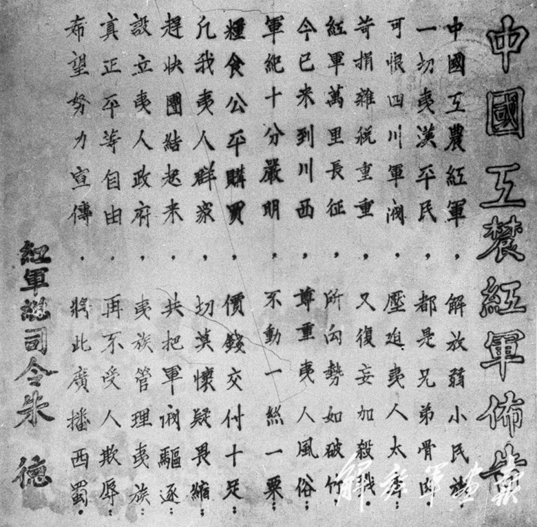 紅軍進入大涼山彝族地區(qū)時頒發(fā)布告,宣傳黨的民族政策。(本刊資料室)