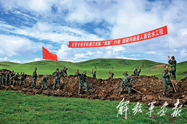 武警甘肅總隊為瑪曲縣援建人畜飲水工程。(攝影/穆可雙)