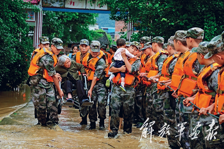 2017年7月2日,受洪澇災(zāi)害影響,廣西全州縣安和鎮(zhèn)300余名群眾被困,陸軍第75集團軍某旅緊急前往現(xiàn)場展開救援。(攝影/黃遠利)