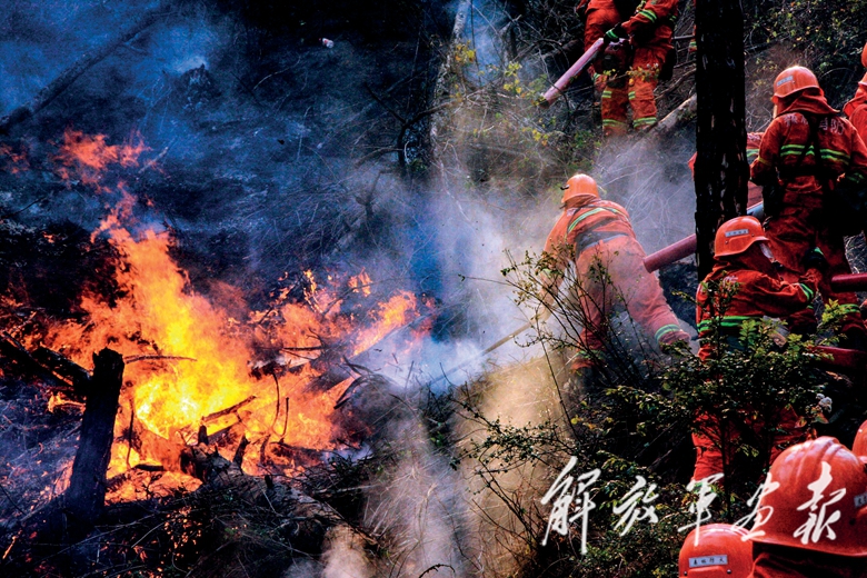 2014年3月19日,武警官兵在四川省西昌市瀘山風(fēng)景區(qū)奮勇?lián)浠?。(攝影/李結(jié)義)